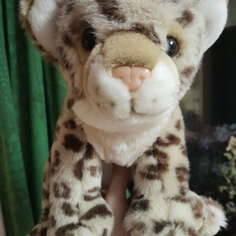 Aivan ihana leopardi pehmolelu, jossa lappukin tallella. Hänellä on kauniit ruskeat silmät.