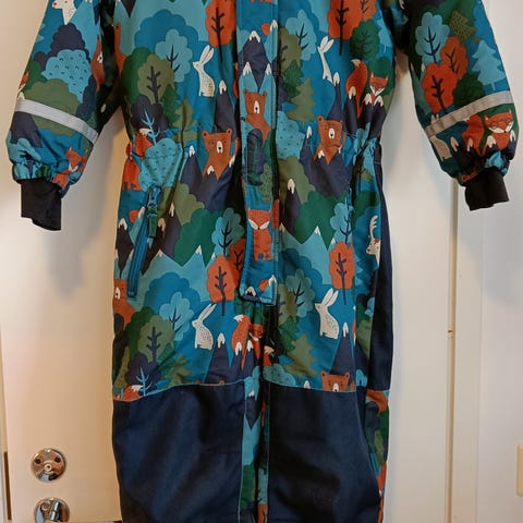 Käytetty kunto, kahdella lapsella, toisella suosikkihaalari ja hartaasti käytetty. Lahje paikattavissa, kaulusta purtu. Takamus ehjä.