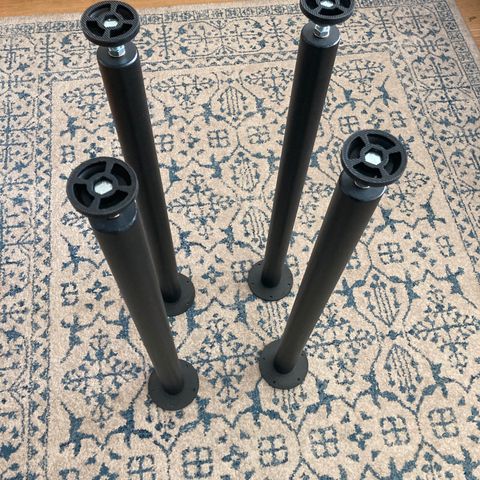 Myydään käytössä olleet mustat pöydän jalat 4 kpl. Jalat voi kiinnittää pöytälevyyn. Korkeus 710 mm, halkaisija 76 mm. Design Möbelfuss.