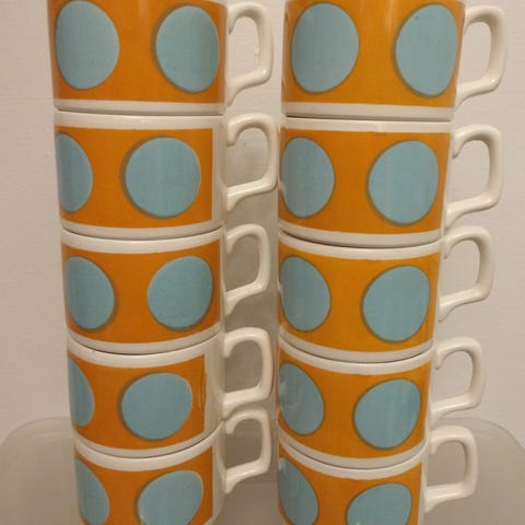 Harvinaisuus, harvinaisuus tarjolla - aivan tavattoman upeat vintage kahvi-/teemukit.