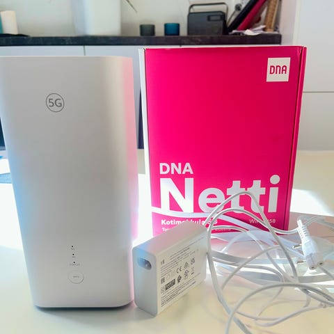 DNA Kotimokkula 5G WiFi H158 reititin. Langaton reititin tukee 4G- ja 5G-mobiiliverkkoja. Väri valkoinen. Saatu tammikuussa 2026 takuuvaihtona, eli uusi laite, mutta itsellä ei enää tarvetta. Testattu toimivuus.