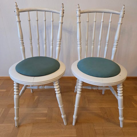 Puiset pinnatuolit 4kpl. Tukevat ja ehjät tuolit, pinta kulunut. Hinta yhteensä 4kpl 20€.