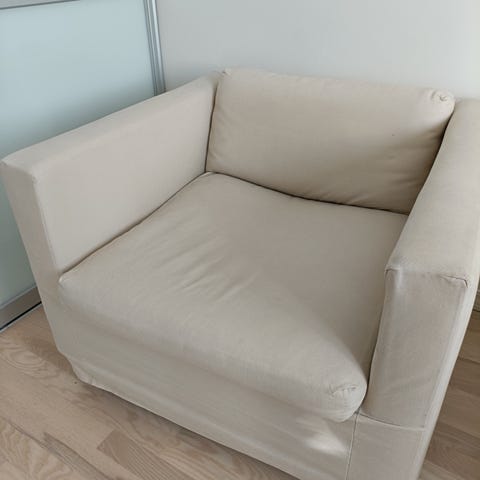 Vanha nahkaverhoiltu nojatuoli erinomaisessa kunnossa. Kaipaa pientä tuuletusta, mutta siisti ja ehjä.