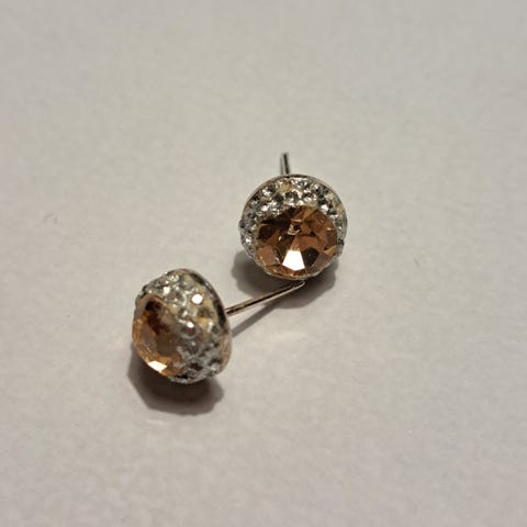Uudet Swarovski helmikorvakorut. Ostettu Itävallasta Swarovskin tehtaan Kristallimaailmasta. Helmen halkaisija 8 mm, helmen alla kristalli. Materiaali rhodium pinnoitettu korumetalli. Mukaan samettipussi.