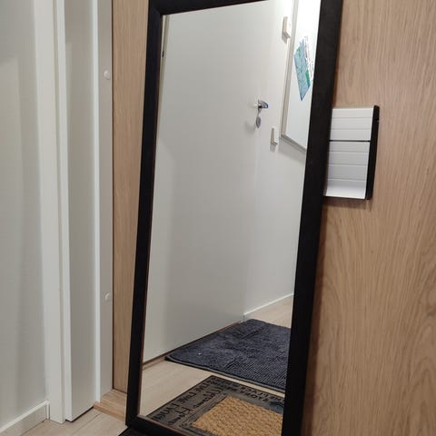 Kiva pieni peili seinään (tms) kiinnitettäväksi. Meillä oli kylppärin kaapin ovessa sisäpuolella. Kivasti piilossa.