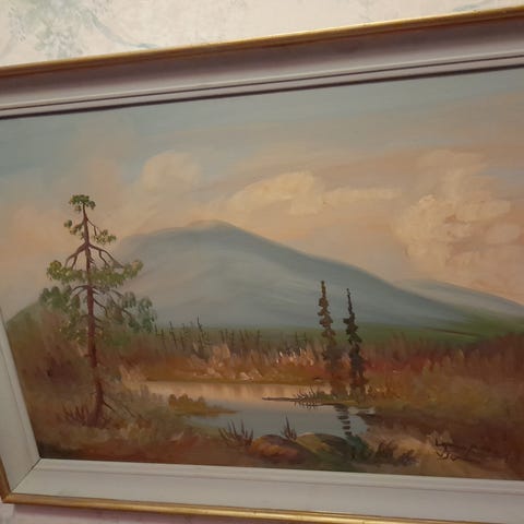 Öljyvärimaalaus maisema kultakehyksillä vuodelta 1966