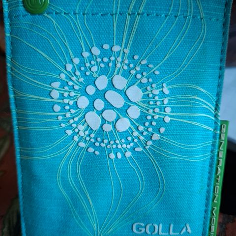 Pieni pussukka , Golla, 12,5cm x 7,5cm, jossa vetoketju ja pieni tasku sisällä, klipsi, jolla voi kiinnittää esim. reppuun tms