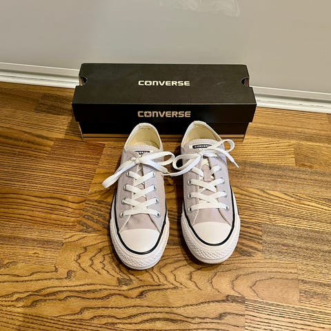 Tunnistaminen: Tunnusomainen pyöreä nilkkamerkki, jossa on Converse All Star -logo, on selvästi näkyvissä kengän sisäsivulla.