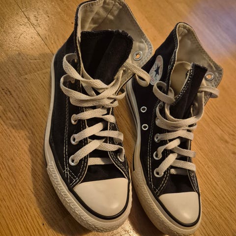 Valkoiset Converse Chuck Taylor All-Star korkeavartiset tennarit, jotka tunnetaan yleisesti myös nimellä "chucks". Koko 36.5 (4)