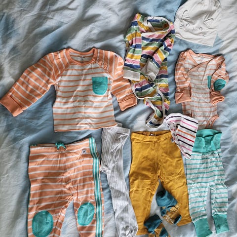 Polarn O. Pyret+Nalle vauvan vaatesetti, koko 68-74, beige/valkoinen unisex