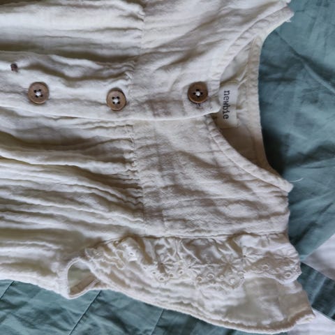 Newbie shortsihaalari 104, aivan ihana ja helppo pukea, joustava, ei nappeja tms. Sivuissa taskut. Lapselle ei kelvannut koska ei ole mekko 🤭, siispä kerran käytetty, uudenveroinen 14 €