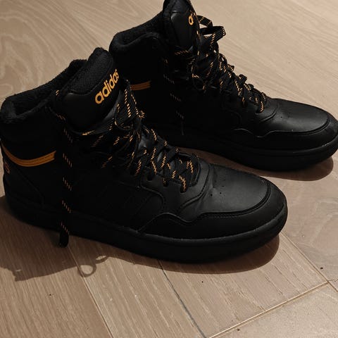 Käyttökulumaan löytyy (kenkien kärjet erityisesti) kolhua saaneet. Ei kannata antaa ulkoasun hämätä. Mainiot talvisään kengät. Ei vuoda, Ei pääse roiskeet ja pärskeet kenkien sisään. Bonus jos villasukat mahtuu vielä mukaan. Adidas laatua. Pohjissa hyvä pito ja kunto moitteeton.