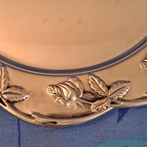 Vanha, aikaa nähnyt alpakasta valmistettu vaasi 1950-luvulta.