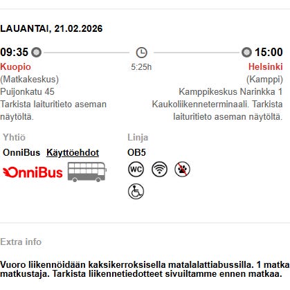 Onnibus Helsinki-Kuopio 22.2