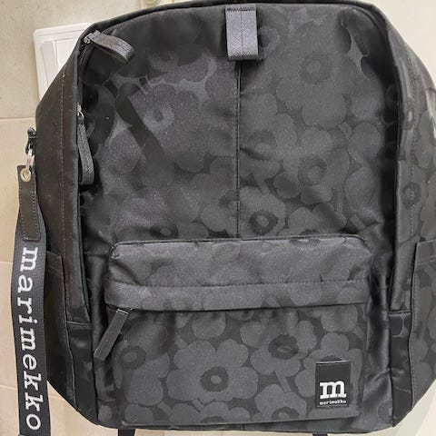 Myytävänä hyvin siisti, vähän käytössä ollut Marimekon reppu.