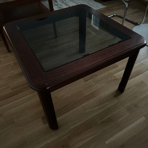 Hakusanat: sohvapöytä, soikea, ruskea, lasikansi, alahylly