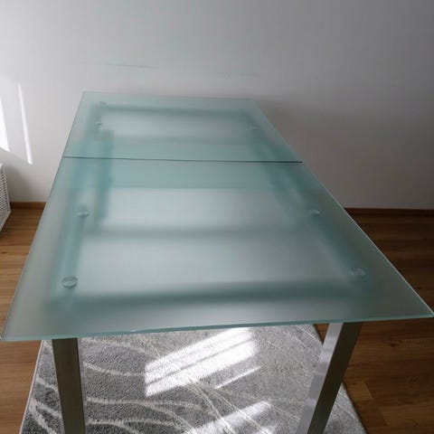 Hakusanat: huonekalu, huonekalut, käytetyt huonekalut, suorakulmainen, 90x180cm, pöytä, pöydät, ruokapöytä, keittiö, keittiöpöytä, ruoka, ruokailu, taso, keittiön, vaalea, valkoinen