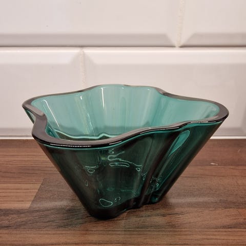 Iittala Aalto kulho sinisestä lasista. Pohjassa pari pientä naarmua.