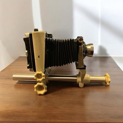 Myydään kuvien mukainen large format -paketti: Intrepid 4x5 -kenttäkamera, Fujinon f/4.5 -objektiivi sulkimella (linssilevyssä), Horseman 6x7 (120) rollfilmbakki sekä 2 kpl Toyo 4x5 filmikasetteja. Mukaan Intrepidin vihreä suojakangas ja kuvan mukaiset tarvikkeet. Nouto (Kirkkonummi) tai postitus, ostaja maksaa toimituksen.