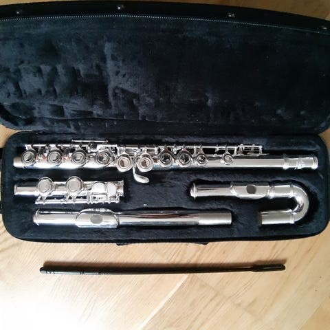 Eräs huilu koteloineen. Poikkihuilu, pelaava.