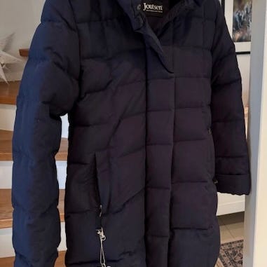 Joutsen naisten talvitakki, koossa M. Takki on pitkä ja lämmin. Takissa on kiinteä huppu ja edessä täyspitkä vetoketju. Takki on ihanan kevyt ja toiminnallinen käyttää. Vyötäröllä kiristysnyöri istuvuuden säätöön. Mielestäni kyseessä on isohko M-koko, mutta kiristysnyörin vuoksi takki menee myös S-kokoa käyttäville (hieman väljemmin toki) tai vastaavasti täysin hyvin myös L-kokoa normaalisti käyttäville. Sopii kylmiin talvikeleihin, arkikäyttöön sekä tarvittaessa myös virallisempiin tilaisuuksiin.