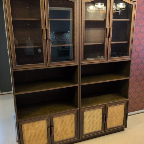Siistit n. 80-luvun kirjahyllyt. 40€/kpl. Ei mitään suurempia vikoja tai puutteita ikä huomioiden. Pientä kulumaa. Tummanruskea väri. Saranat toimii. Mitat yhdelle hyllylle.