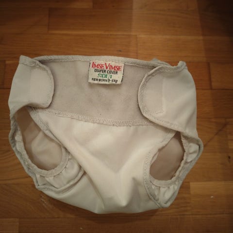 Imse Vimse sisävaippa vauvalle. Luonnonvalkoinen, pehmeä puuvillainen vaippa, jossa joustoresorit sivuilla ja muotoiltu malli. Tarkoitettu käytettäväksi yhdessä vaippakuoren kanssa. Sopii kestovaippailuun ja toistuvaan käyttöön. Kuvissa useampi samanlainen vaippa samassa erässä. 17kpl koko M