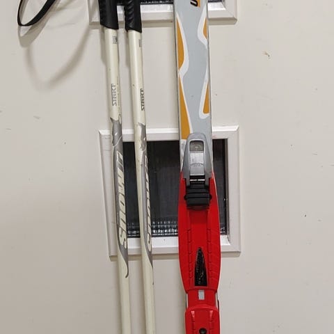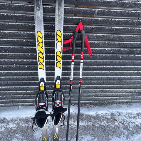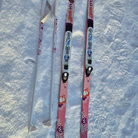 Myydään setti: sukset 130cm, sauvat 110cm, mono koko 34 (SNS). Olleet lapsilla kouluhiihdossa, kulumaa ja käytönjälkiä, mutta täysin ehjät ja passelit juurikin esim.koulun hiihtoihin.