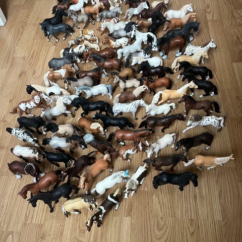 Schleich hevoset 7kpl myydään mielellään pakettina. Rambon tallista tutut Rölli, Nita, Flikka, Nuppu. Leikeissä olleet joten kulumaakin jo - katso kuvat.