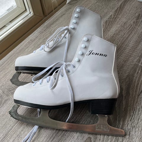 Mia taitoluistimet, koko 39. Väri valkoinen, musta kanta. Nauhakiinnitys ja teräksiset luistinterät. Soveltuvat yleiseen luisteluun ja harrastekäyttöön jäällä.täytyy teroittaa varmasti muuten oikeen hyvät Sipoo nikkilä