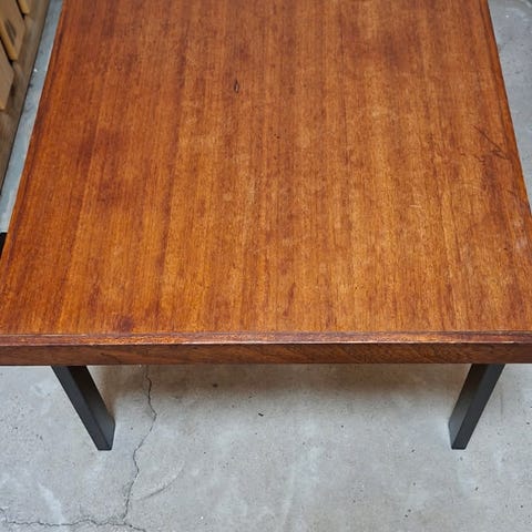 Myydään vanha Askon teak-pöytä 1 m x 1 m. Hyvässä kunnossa pidetty, pöydän pinnassa yksittäinen naarmu (näkyy kahdessa viimeisessä kuvassa). Toisen kuvan laatat eivät ole pöydässä kiinni! Pöytä on tällä hetkellä varastossa, voidaan ottaa lisää kuvia tarvittaessa 😊