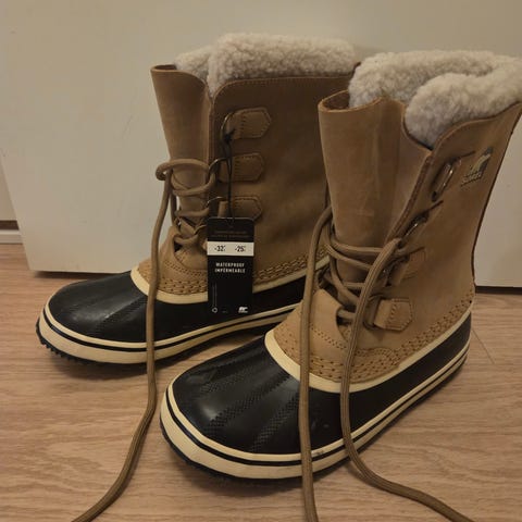 Myydään vähällä käytöllä olleet ja taas koko talven käyttämättä jääneet lämpimät ja vedenpitävät Sorel talvikengät.