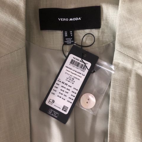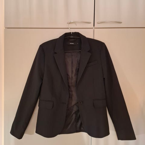Ihana hyväkuntoinen Tanskassa valmistettu "Just in" merkkinen 20% villainen bleiseri. Kolme taskua, kaikki napit tallella ja päälyskangas täysin ehjä. Vuorikankaasta löysin kainalon kohdalta pienen repeämän Lapussa ilmoitettu koko c36/10🤎