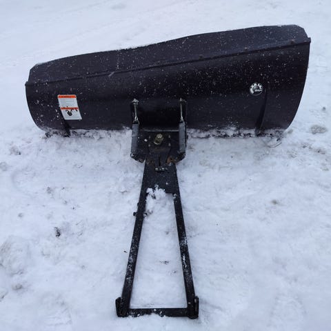 Täysin käyttämätön lumiaura henkilöauton peräkoukkuun kiinnitettäväksi.