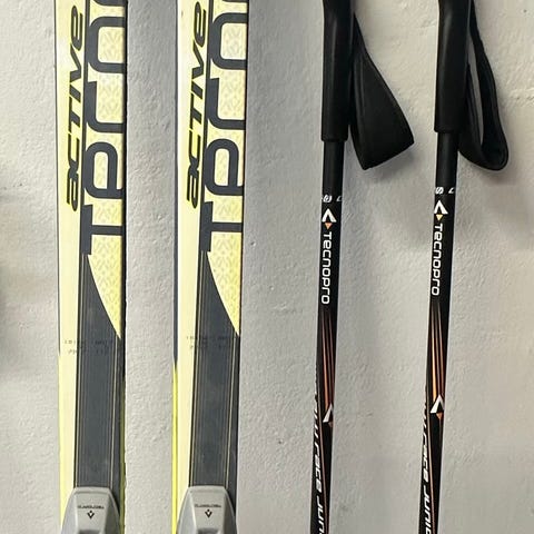 Salomon Equipe JR Combi lasten maastohiihtosukset SNS siteillä. Paljon käytetyt, mutta toimivat ja ehjät edelleen. Sauvojen pituus 110cm. Koiratalous.