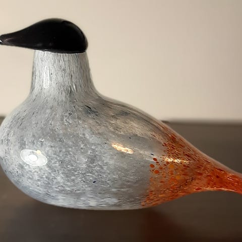 Tässä kohteessa myydään Mikko Karppaisen Iittalalle suunnittelema siniharmaa Kuukivi. Tuotannossa 1980-luku. Mahdollisesti Terrius. Haalistunut kolmiotarra.