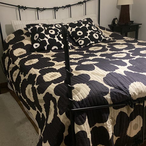 UUSI Marimekko Unikko -päiväpeite, koko 260x260 cm. Kuosina klassinen Unikko, sävyinä beige ja valkoinen. Sopii parisänkyyn tai suureen sänkyyn. VAIN NOUTO. Käteis maksu.