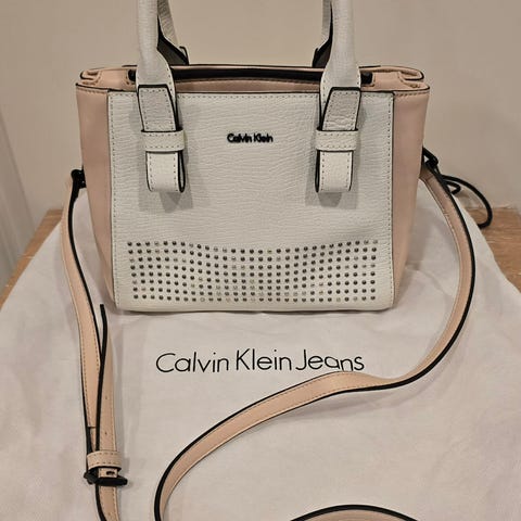 Uusi käyttämätön Calvin Klein käsilaukku vaalealla monogrammikuosilla ja kukkakuviolla. Laukussa on kaksiosainen päälokero, jonka keskellä on vetoketjullinen tasku. Sisällä on lisäksi vetoketjutasku ja avotaskuja pientavaroille. Laulun virallinen nimi: Pink Floral Handbag.