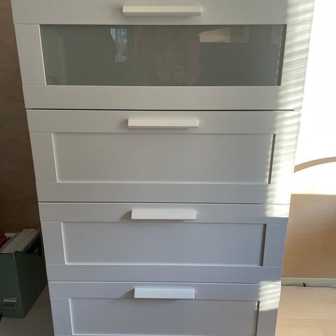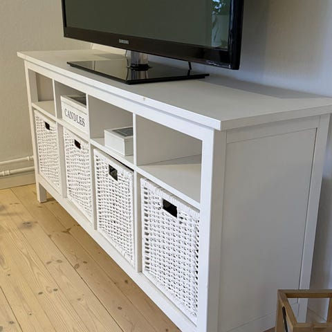 Alle vuoden käytössä ollut lipasto. Muuten erittäon hyvässä kunossa, mutta pieni kolhu tullut etureunaan.