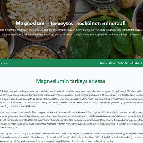- Potentiaali 5-numeroisiin tuloihin/kk (10 000+ €/kk): Laajenna multi-pageksi (lisää sivuja puutoksesta, lapsille, vegaaneille, veriarvoista), rankkaa orgaanisesti + PPC → tuhannet kävijät → affiliate-myynnit räjähtää talvella, kun markkinat kasvavat!