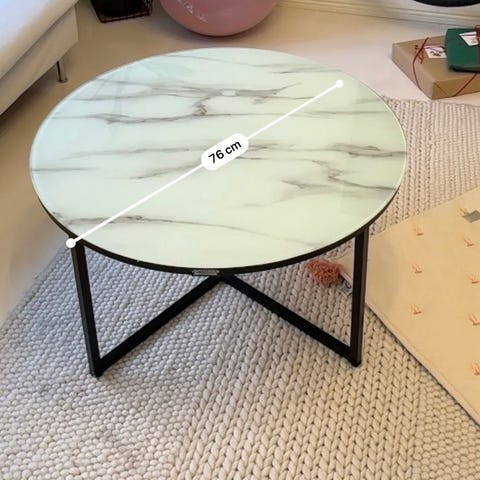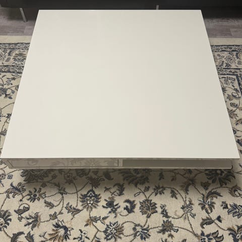Huom. Hinta laskettu 100–>60€. Valkoinen kiiltävä pintainen sohvapöytä