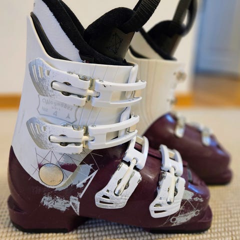 Atomic Waymaker Girl 3 -laskettelumonot lapsille. Kengän koko on 23.0/23.5, pohjan pituus 277 mm. Väri on valkoinen tummanpunaisin yksityiskohdin. Monossa on kolme solkea, joilla istuvuutta voi säätää. Soveltuu juniorilaskijalle rinteeseen.