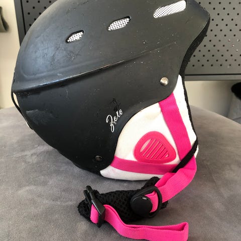 Lasten laskettelukypärä, jossa pinkki väri ja perhoskuviointi. Koko xs/s