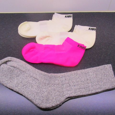 Varrettomat sukat 3 kpl paketissa. Värit: pinkki, turkoosi ja musta. Merkki Kari Traa.
