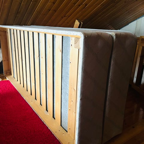 Isomman tieltä noutopalkalla ehjä sänky. Niiralasta.