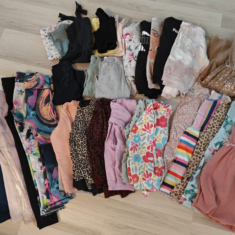 Tyttöjen hyväkuntoisia vaatteita, n.128cm. Paketissa 2 toppia, 1 collegepaita, 6 t-paitaa, farkut, pellavahousut, kangashousut ja huppari.