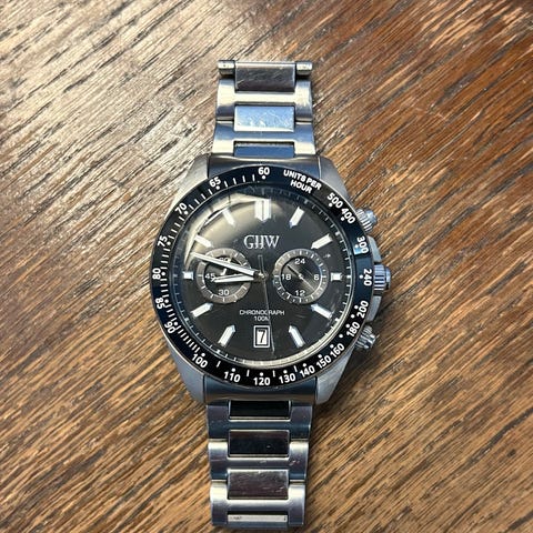 Myydään miesten GHW-merkkinen rannekello. Ostohinta ollut 99€, takuu yhä voimassa (ks. viimeinen kuva). Patterikin toimii yhä.