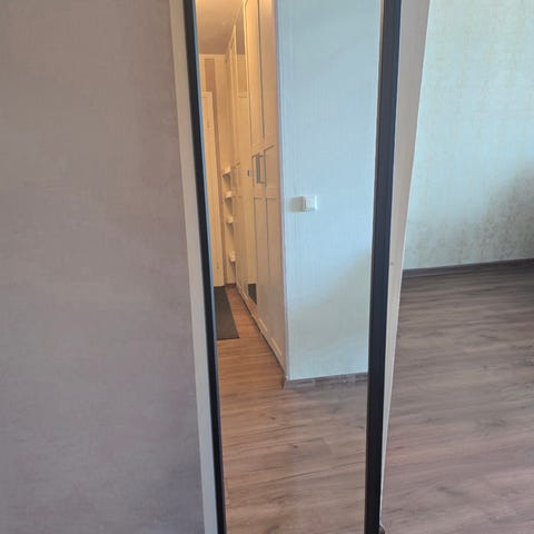 Ferm Living Poise peili mustalla metallikehyksellä. Peilissä on kaareva yläreuna ja kapea, suorakulmainen muoto, joka sopii esimerkiksi eteiseen tai makuuhuoneeseen kokovartalopeiliksi. Mukana tulee musta seinään kiinnitettävä nuppi/tappi ja kiinnitystulppa, joiden avulla peilin voi asentaa seinälle. Materiaalina lasi ja metallinen kehys. Väri musta.