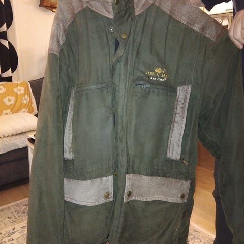 Myydään siisti ja vähän käytetty jahti kääntötakki, tuulenpitävä. Vastaa kokoa L-XL. Eläimetön, savuton talous.