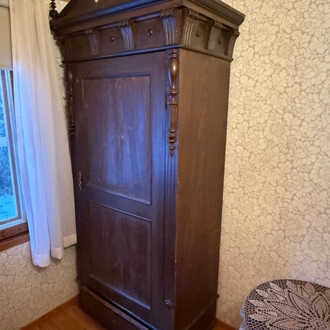Hieno entisöity vanha vaatekaappi. Todella hienossa kunnossa. Hae nopeasti pois.